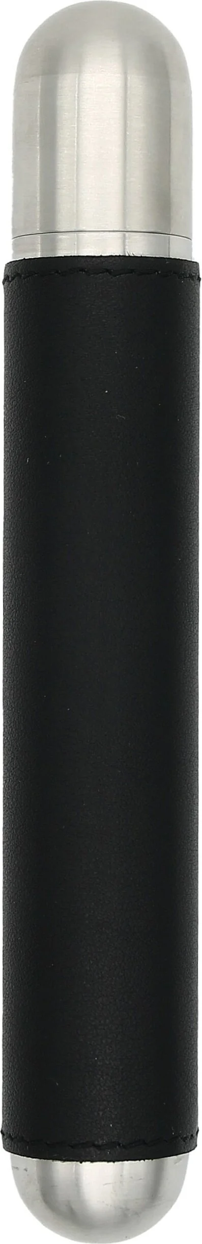 Estuche para puros Adorini de acero inoxidable con funda de piel negra