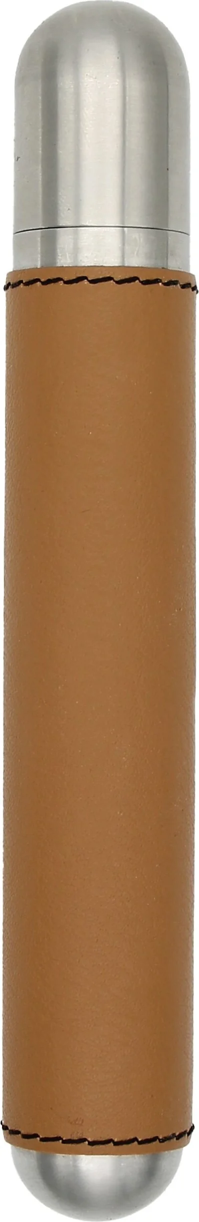 Estuche para puros Adorini de acero inoxidable con funda de piel marrón