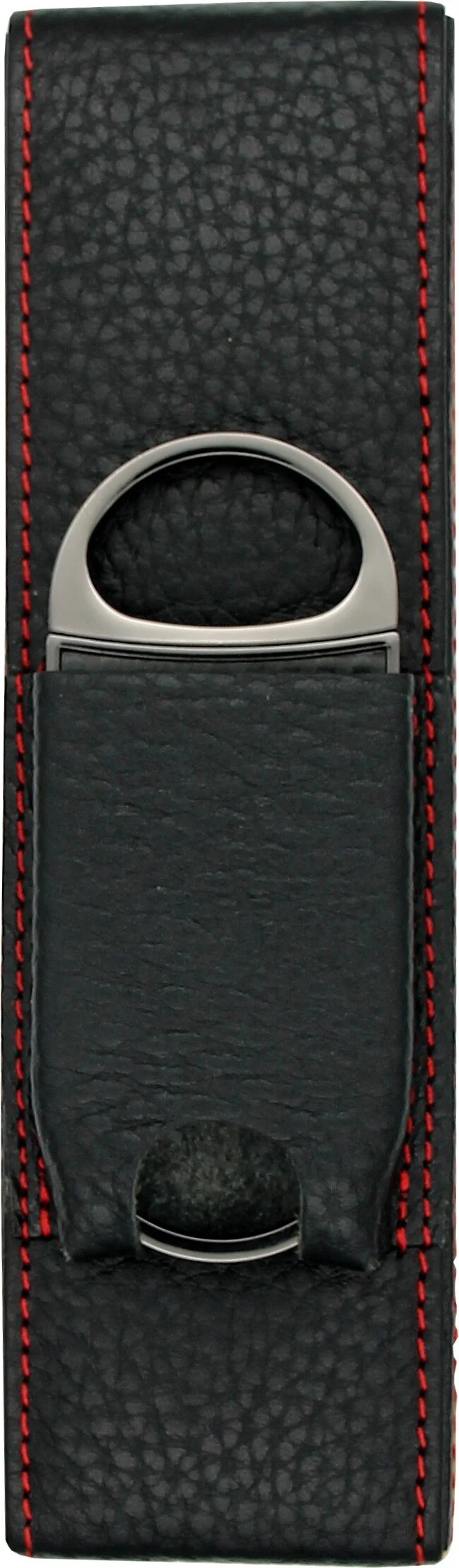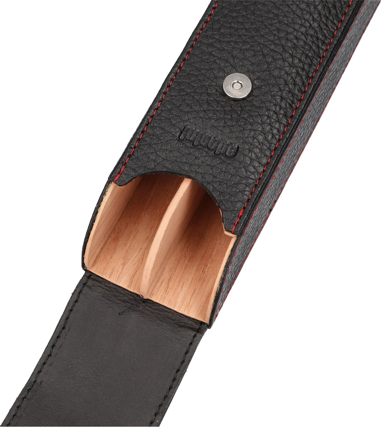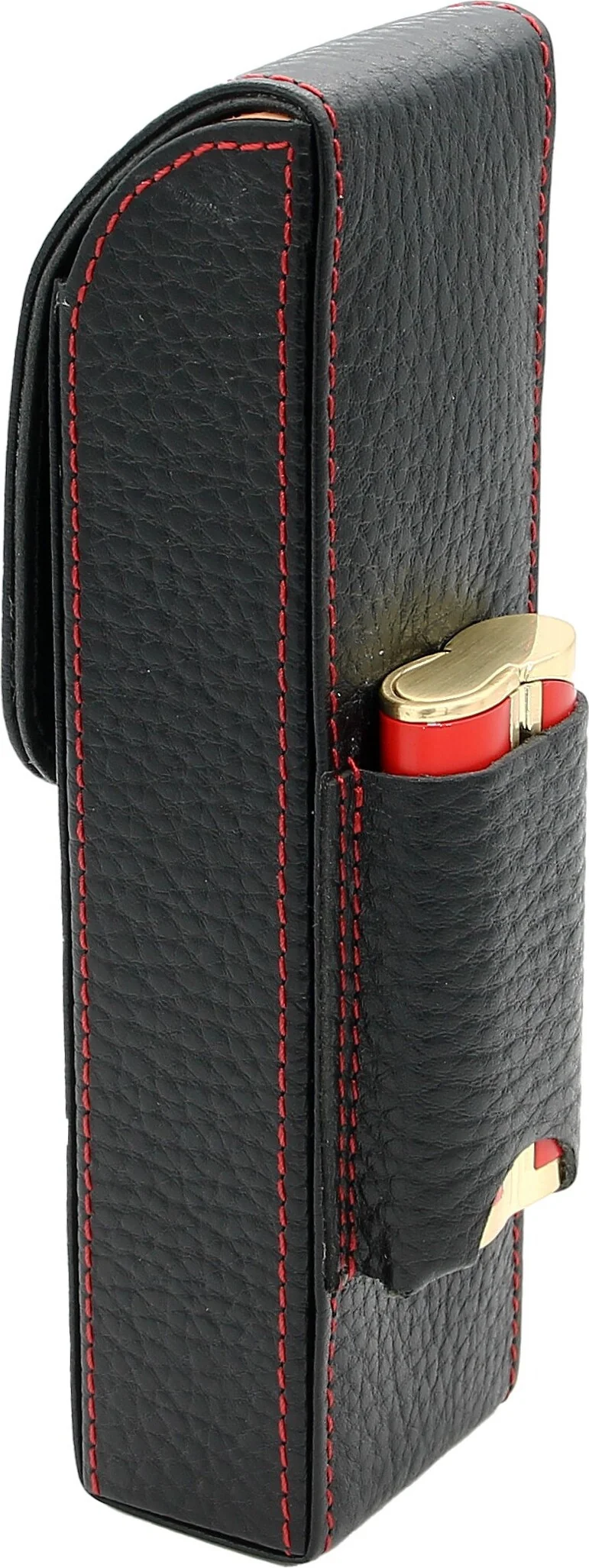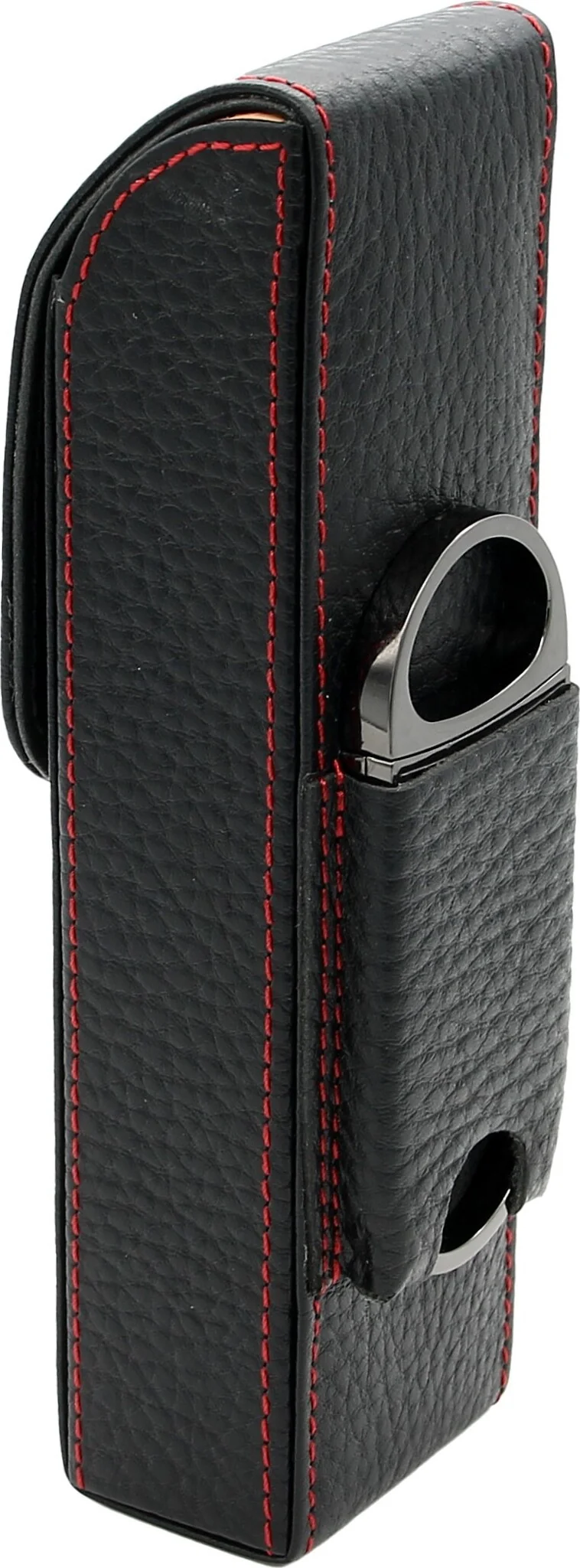 adorini Estuche para puros de bolsillo Negro con costuras decorativas rojas y bolsillo para accesorios