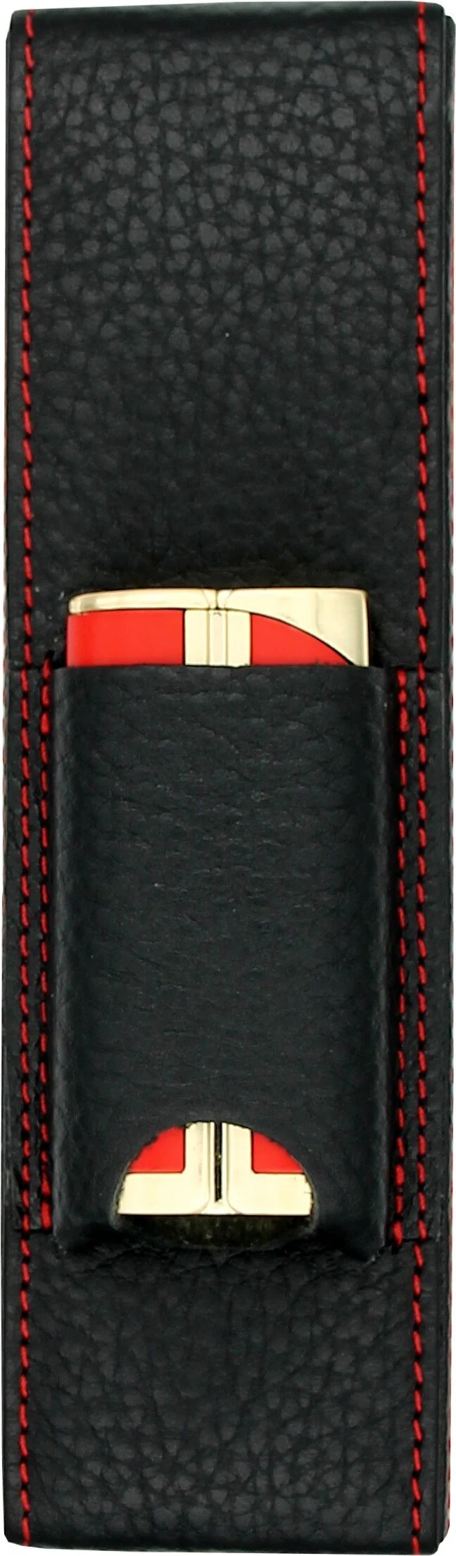 El estuche tiene capacidad para dos puros con una longitud máxima de 16 cm. Un práctico cierre magnético a presión garantiza una sujeción segura y confiere al estuche un aspecto sofisticado. Un sutil relieve adorini se encuentra bajo el borde de apertura, mientras que la costura decorativa roja crea un elegante contraste y redondea armoniosamente su aspecto.