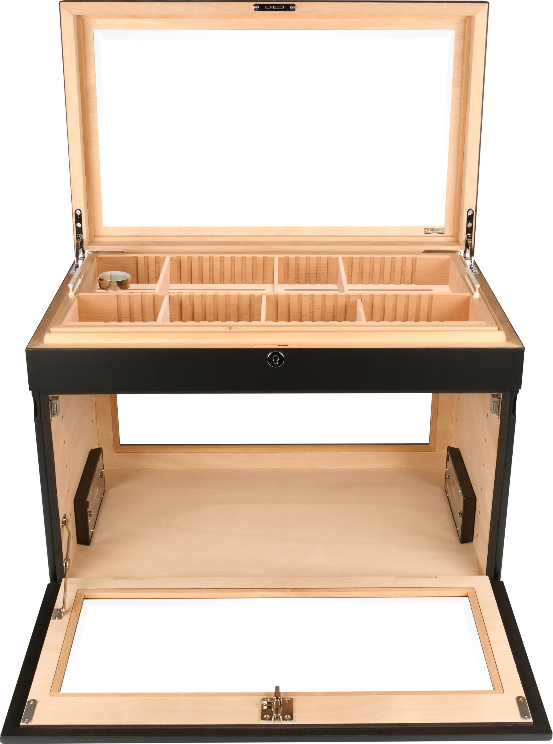 - Cerradura y llave para cerrar el humidor: