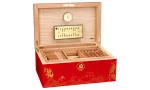 El Humidor adorini Year of the Dragon Grande Deluxe es una edición limitada dedicada al Año Chino del Dragón. Con un impactante color rojo y detalles en motivos dorados y un acabado brillante, es un verdadero centro de atención. En su interior, está revestido con madera de cedro español para crear un entorno de almacenamiento óptimo para sus puros.