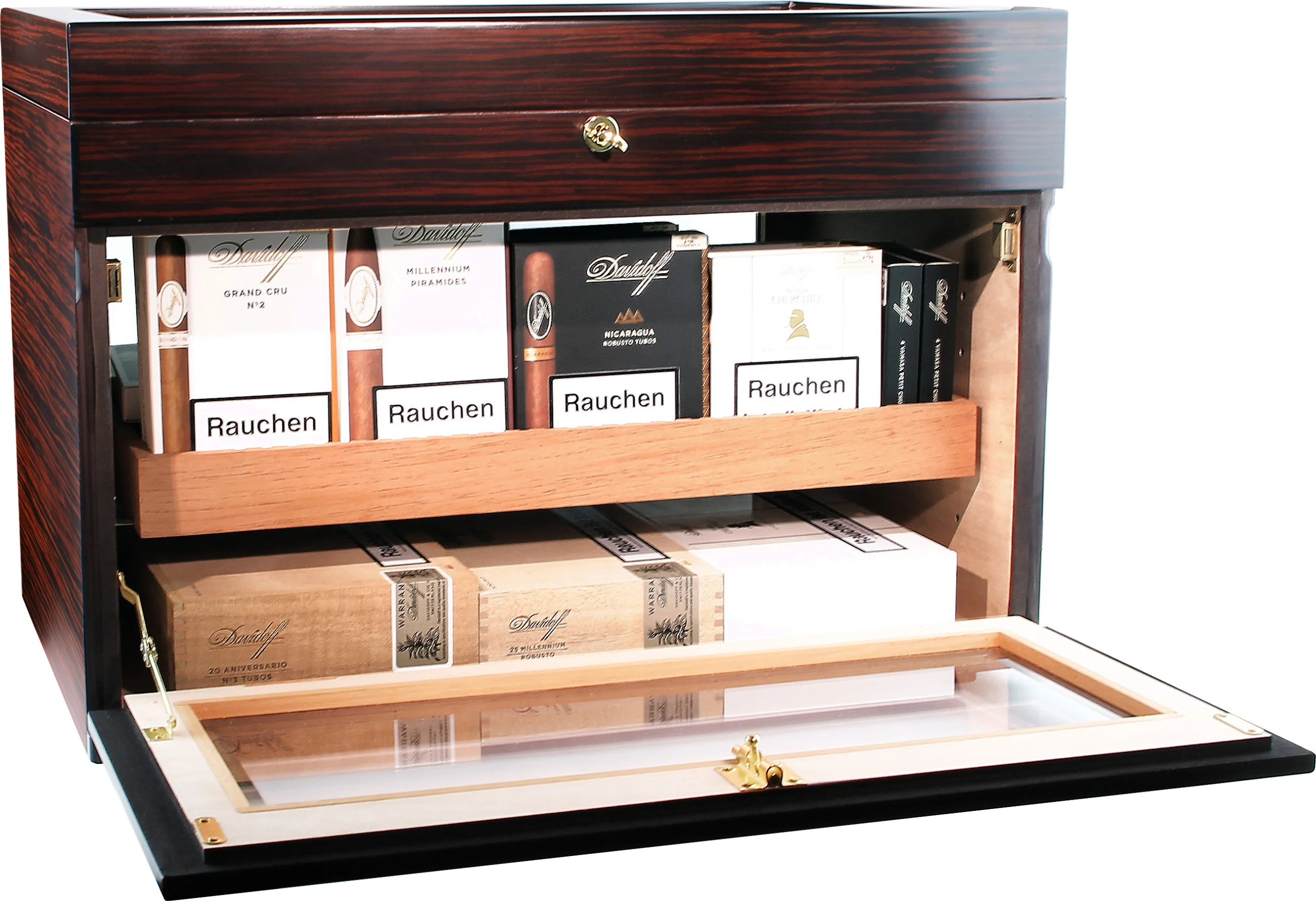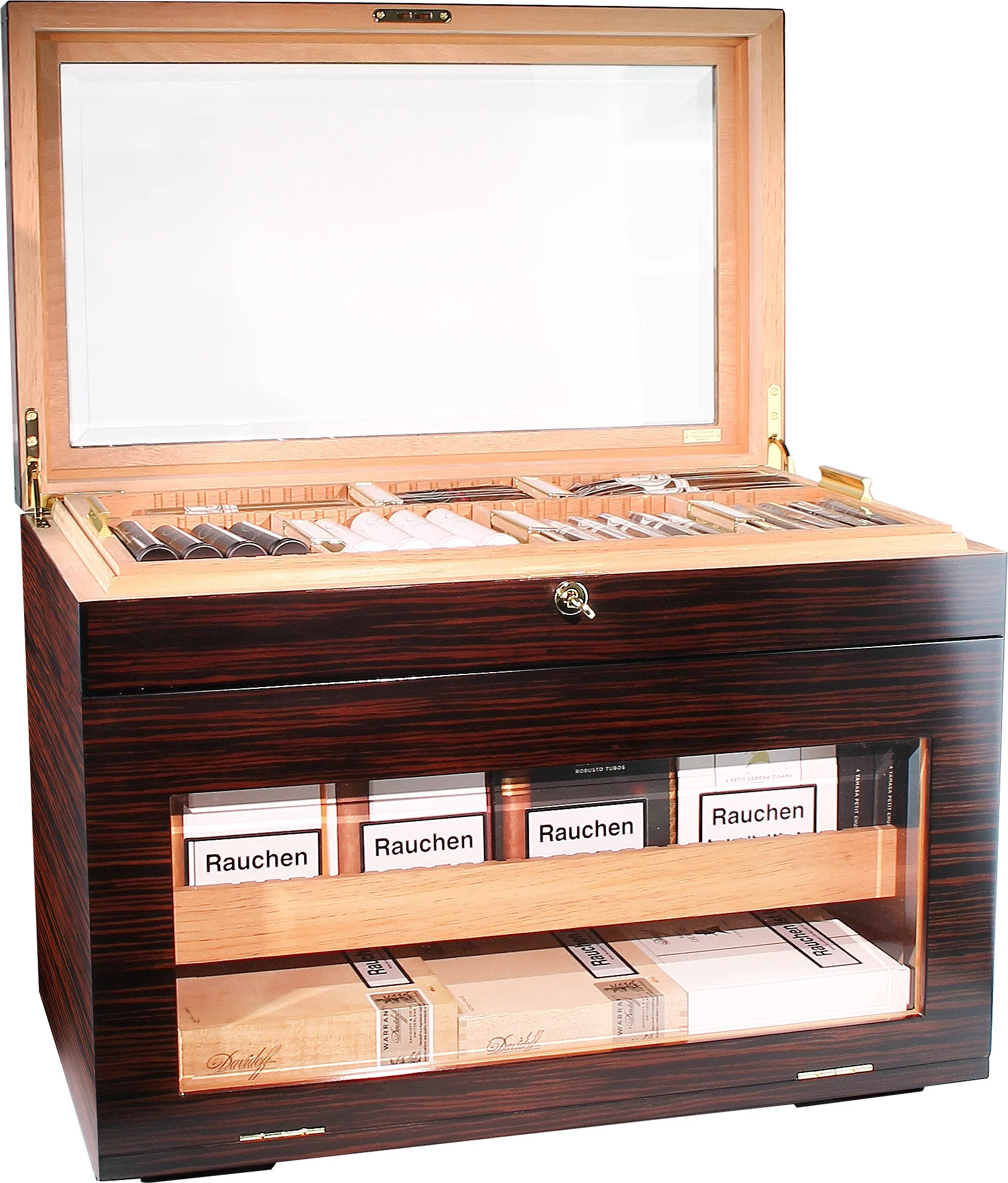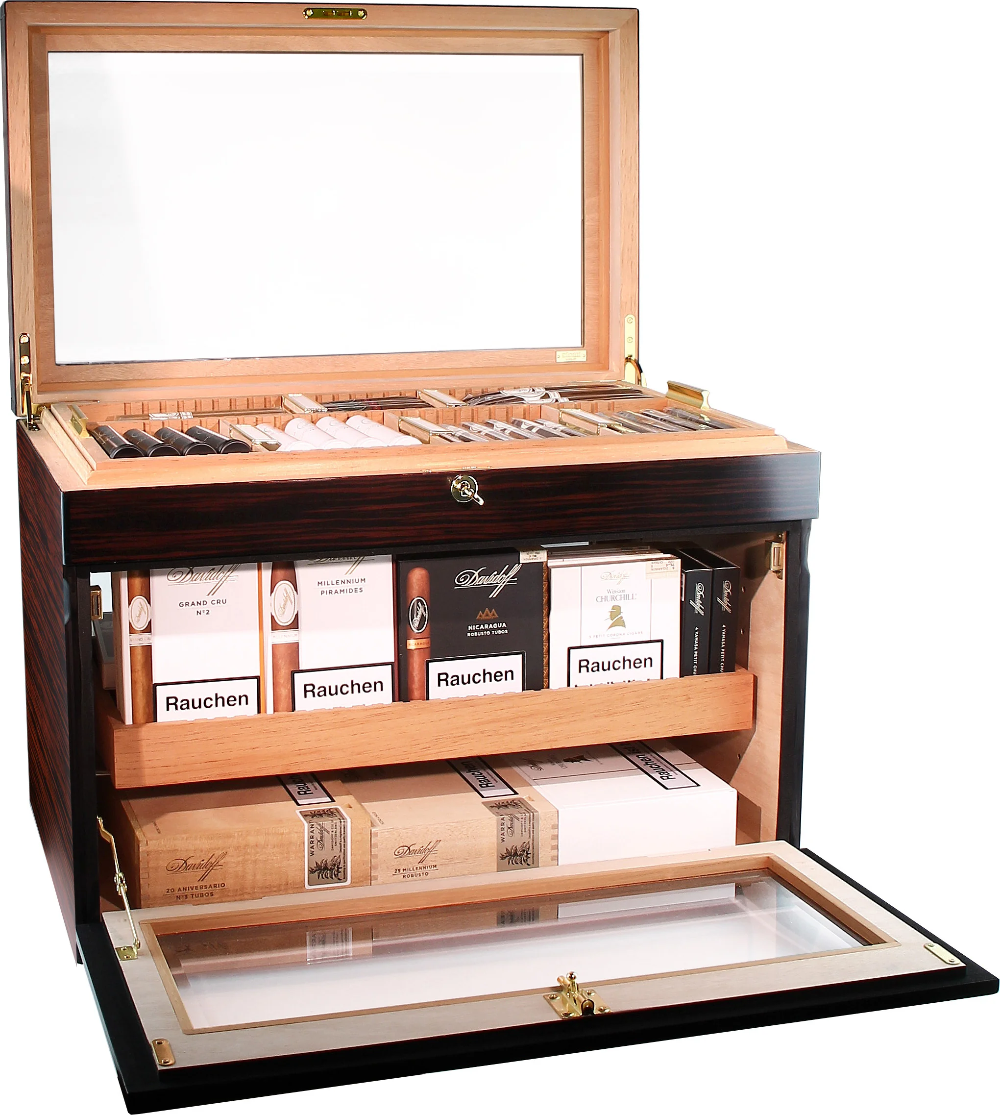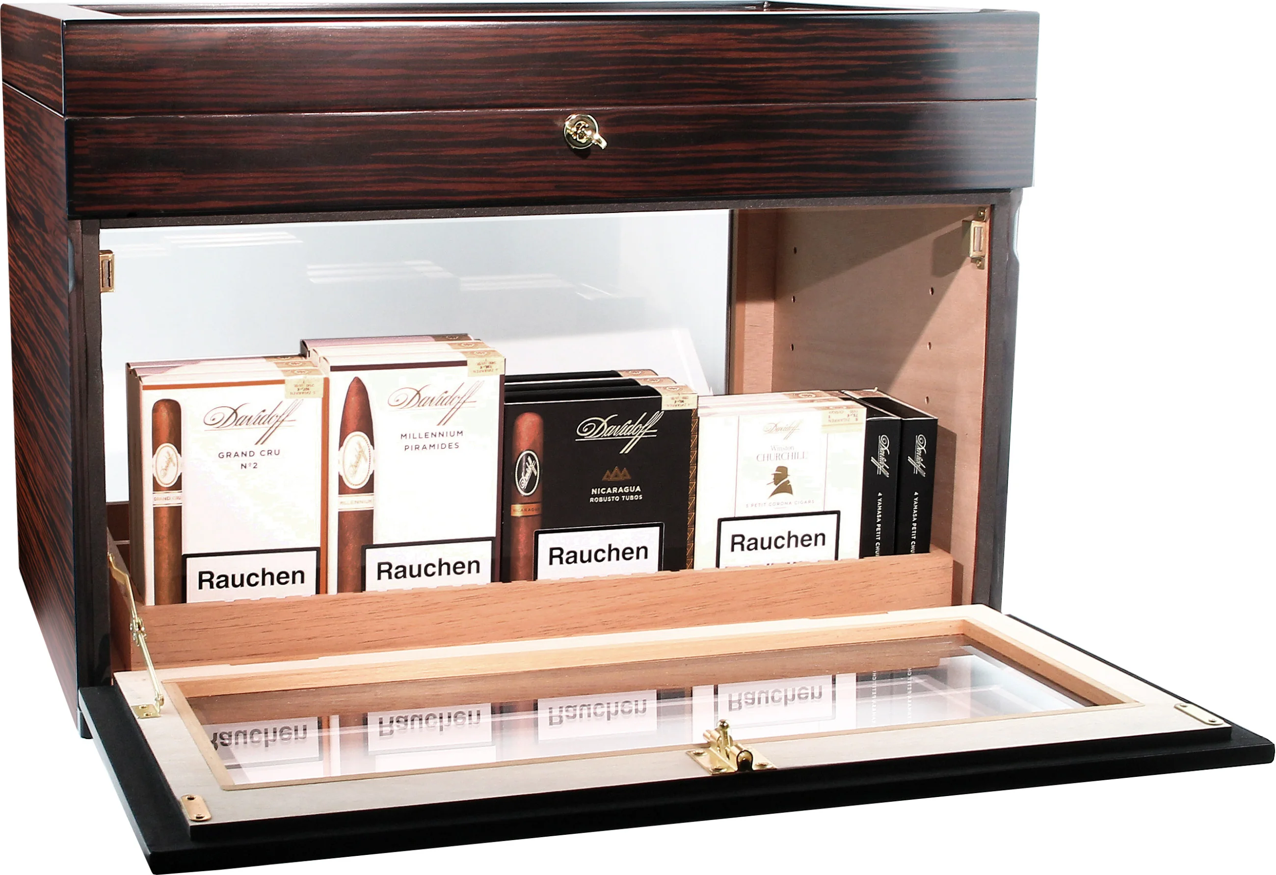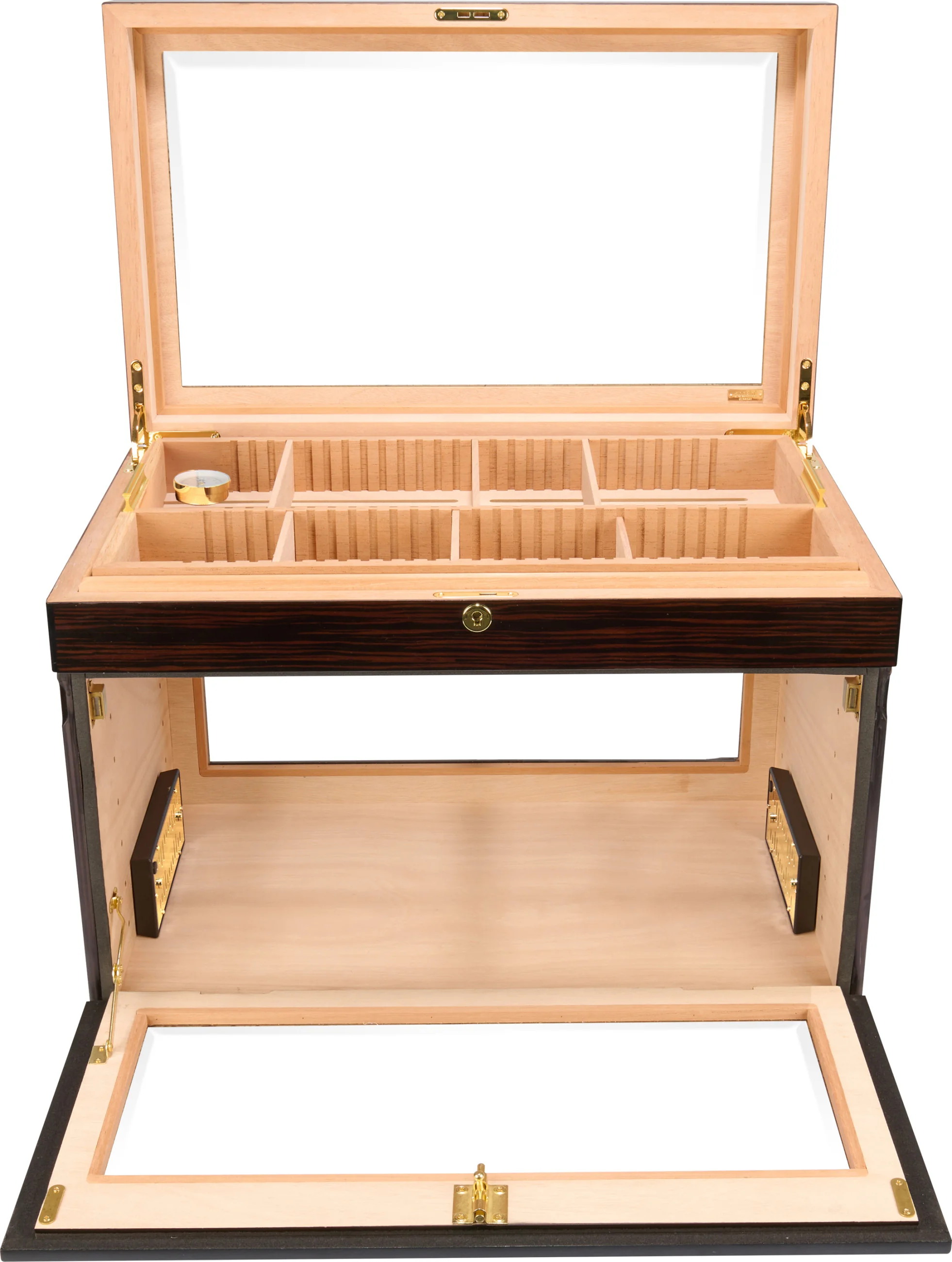 - Humidificador Adorini DeLuxe bañado en oro con humidificación por fibras acrílicas y aberturas de ventilación con tamaño ajustable para una regulación óptima del nivel de humedad