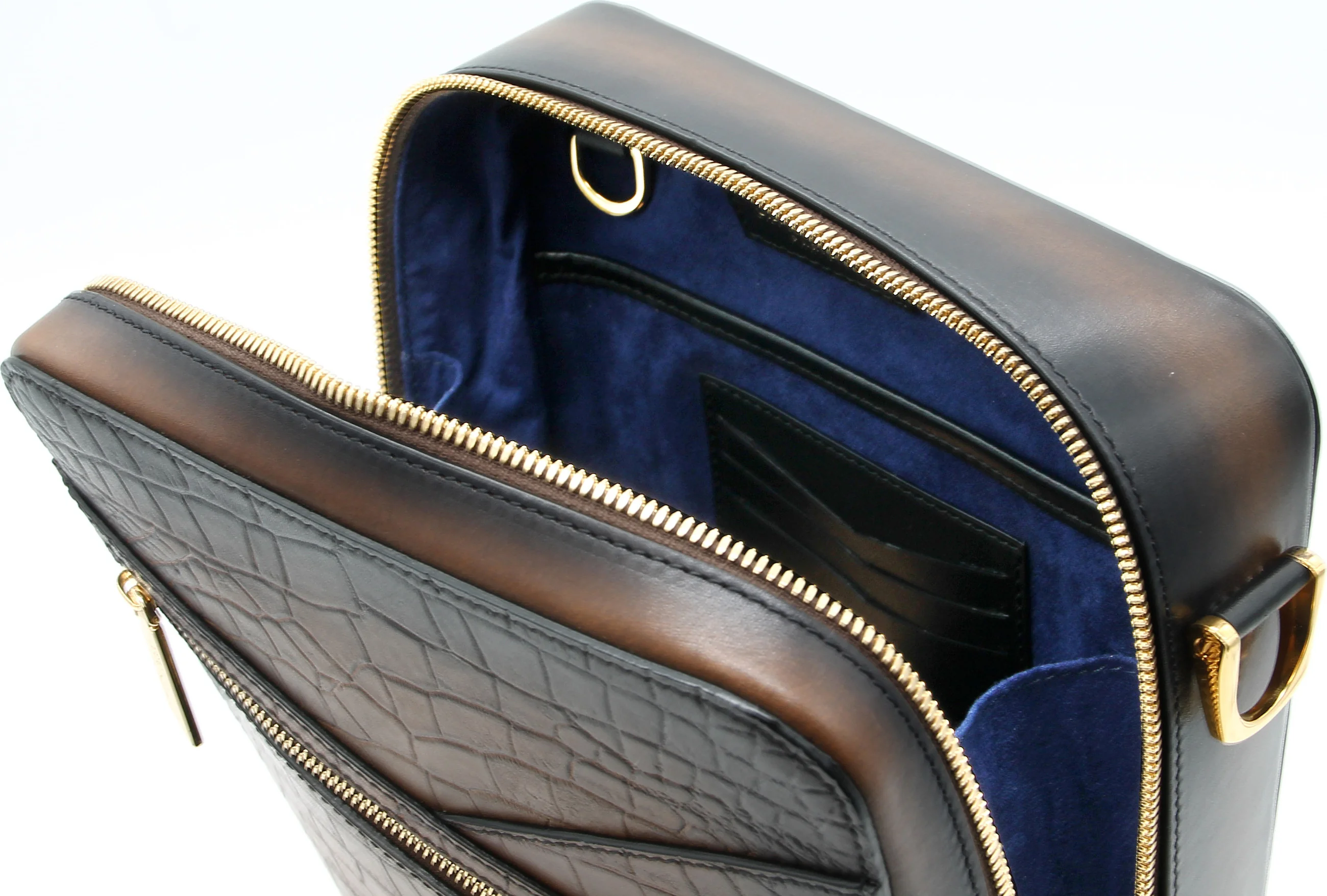 - Fabricada con la mejor piel italiana con aspecto de cocodrilo repujad