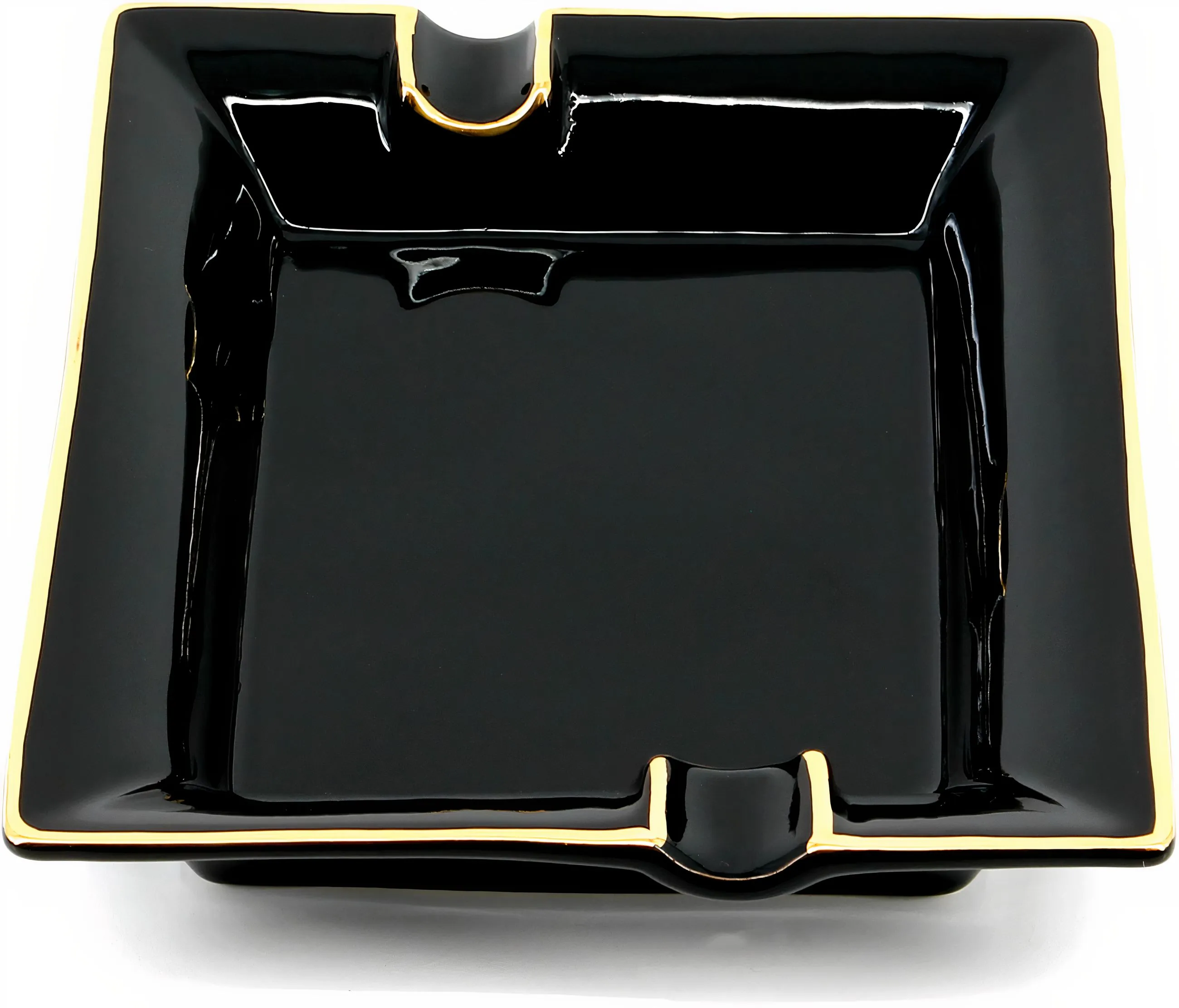 Cenicero para Puros Rectangular Pintado de Oro Negro