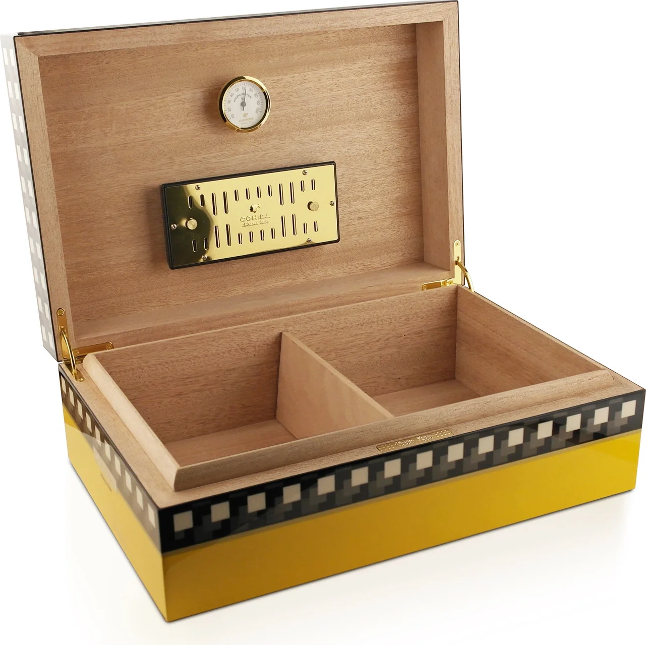 - Dimensiones del humidor (interior) 32,5 × 20 × 9 cm