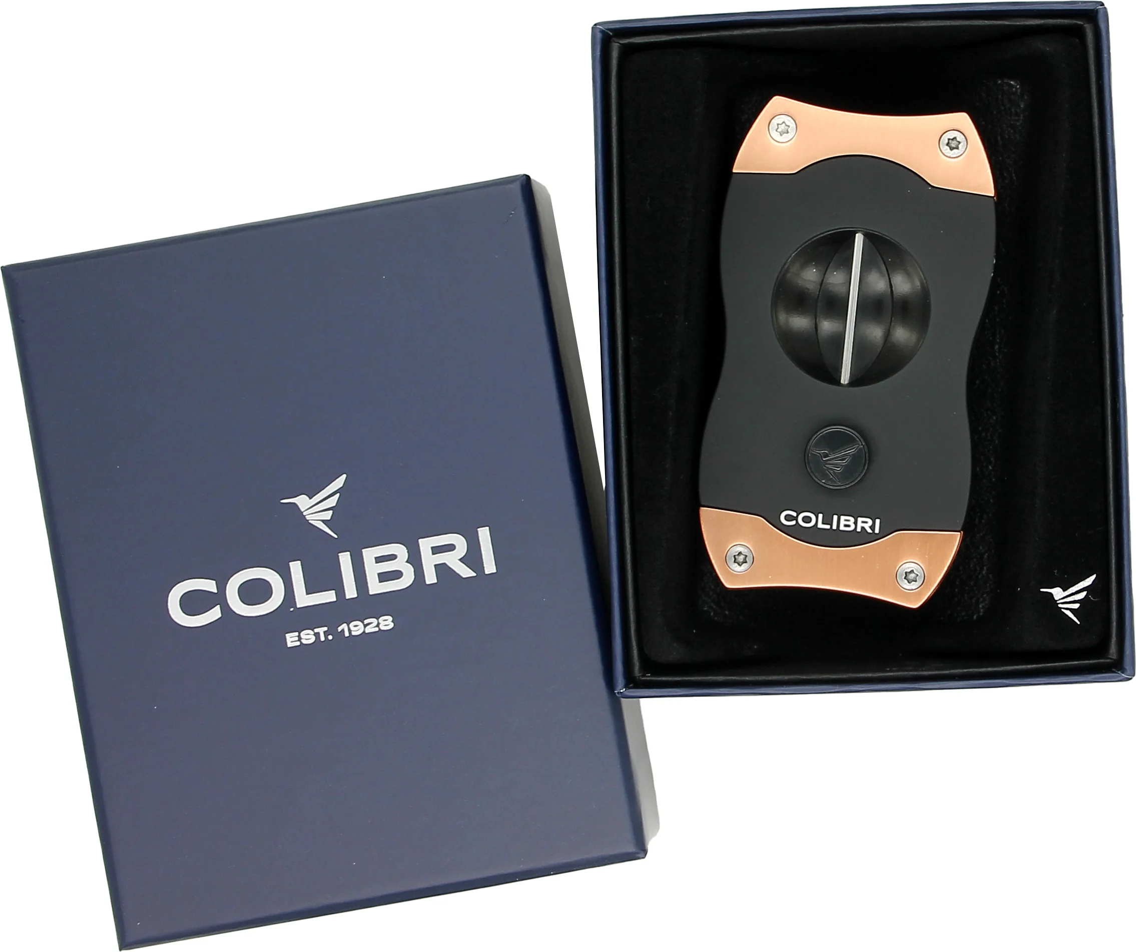 El cortapuros Colibri V-Cut Negro/Oro rosa hará vibrar la estancia gracias a su magnífico acabado en contraste de colores negro y oro rosa. Este aspecto distintivo,moderno y refinado, se acentúa con solo un toque de actitud, gracias a un agarre de goma.