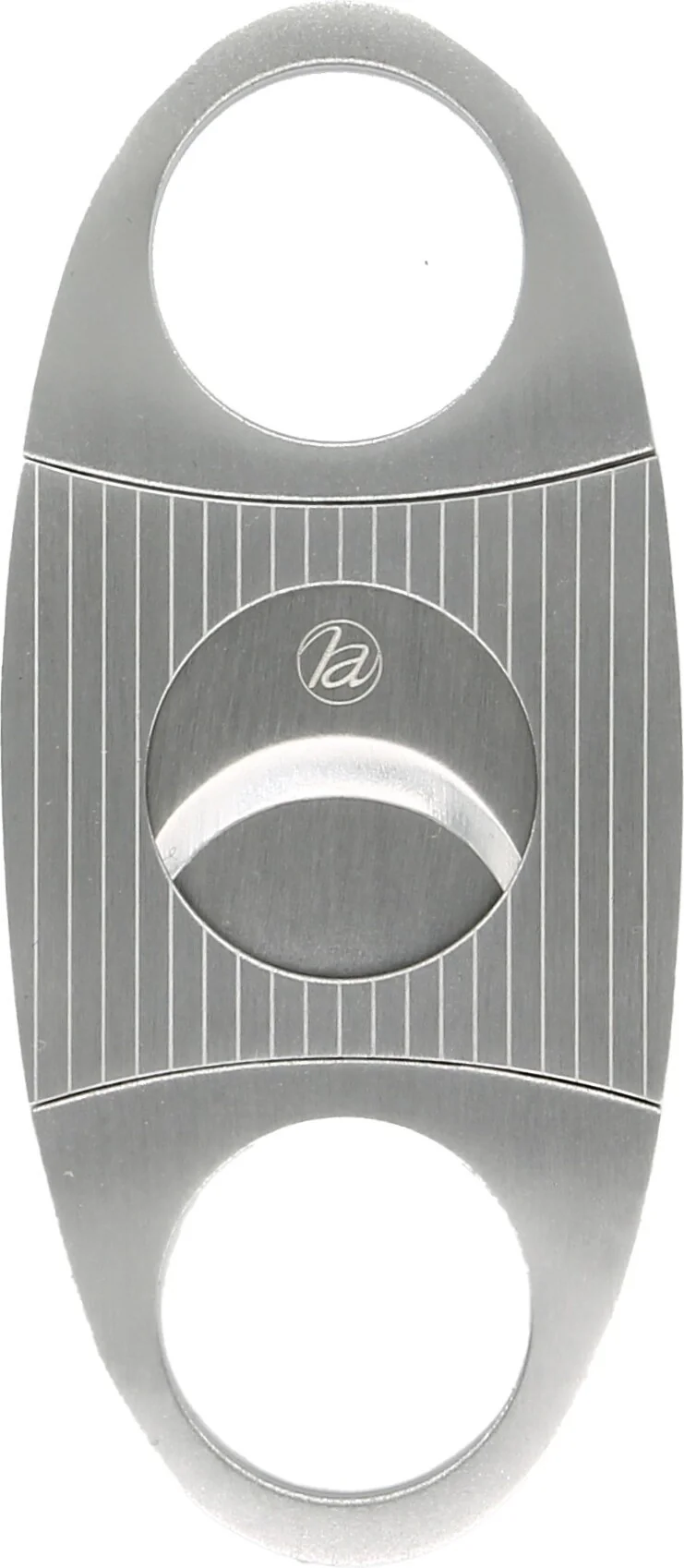 Este cortapuros de doble guillotina, bellamente elaborado, está vestido con un brillante acabado de cromo satinado con un patrón de rayas a través de la carcasa central. Este agradable aspecto contemporáneo se combina con las seductoras curvas del cortapuros para lograr un estilo de buen gusto ideal para cualquier ocasión.