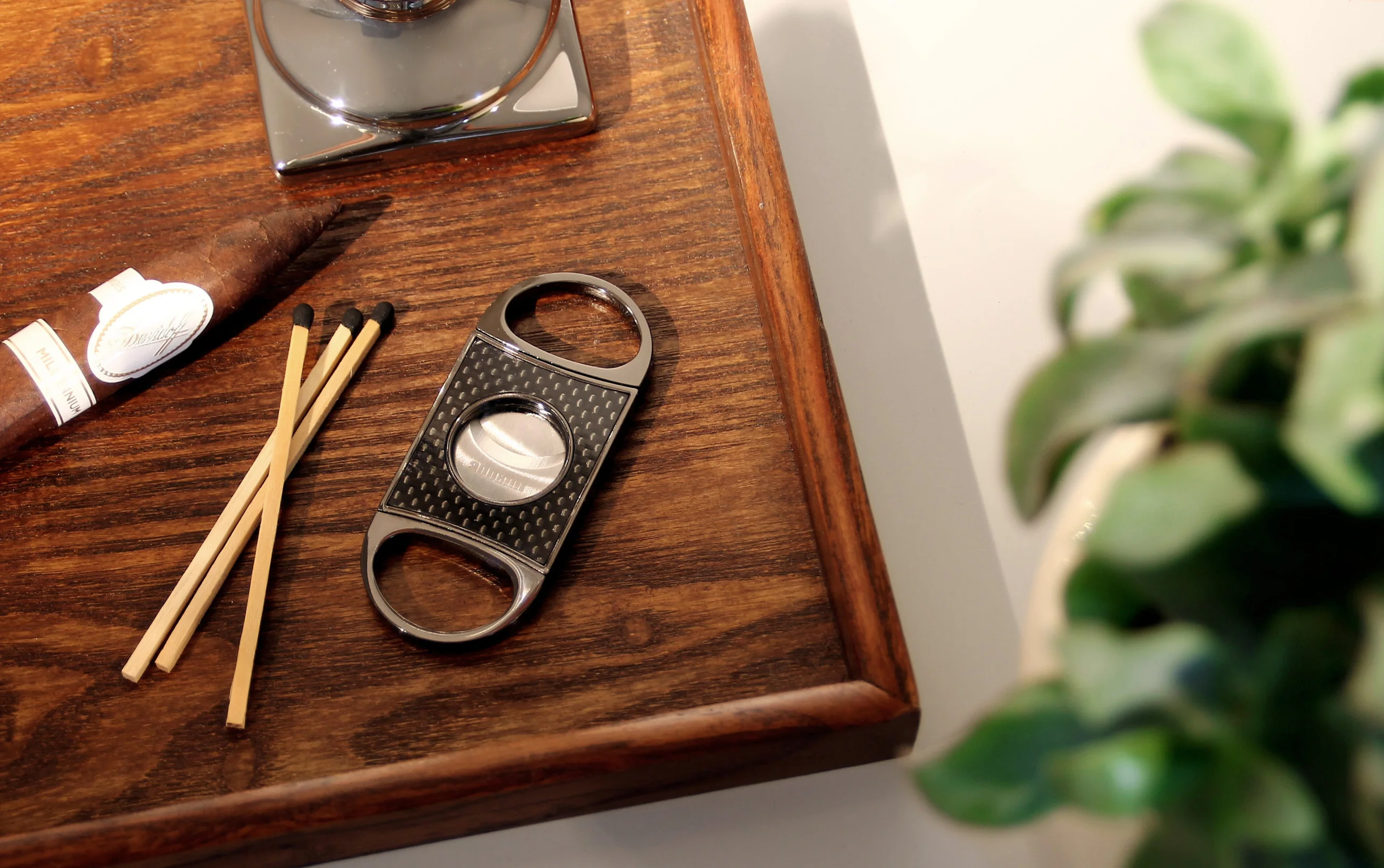 Experimente el elegante cortaùros de doble hoja de carbono en la exclusiva edición limitada de adorini. Este cortapuros está disponible en versiones de oro y bronce de cañón, ofreciendo una combinación perfecta de funcionalidad y diseño.