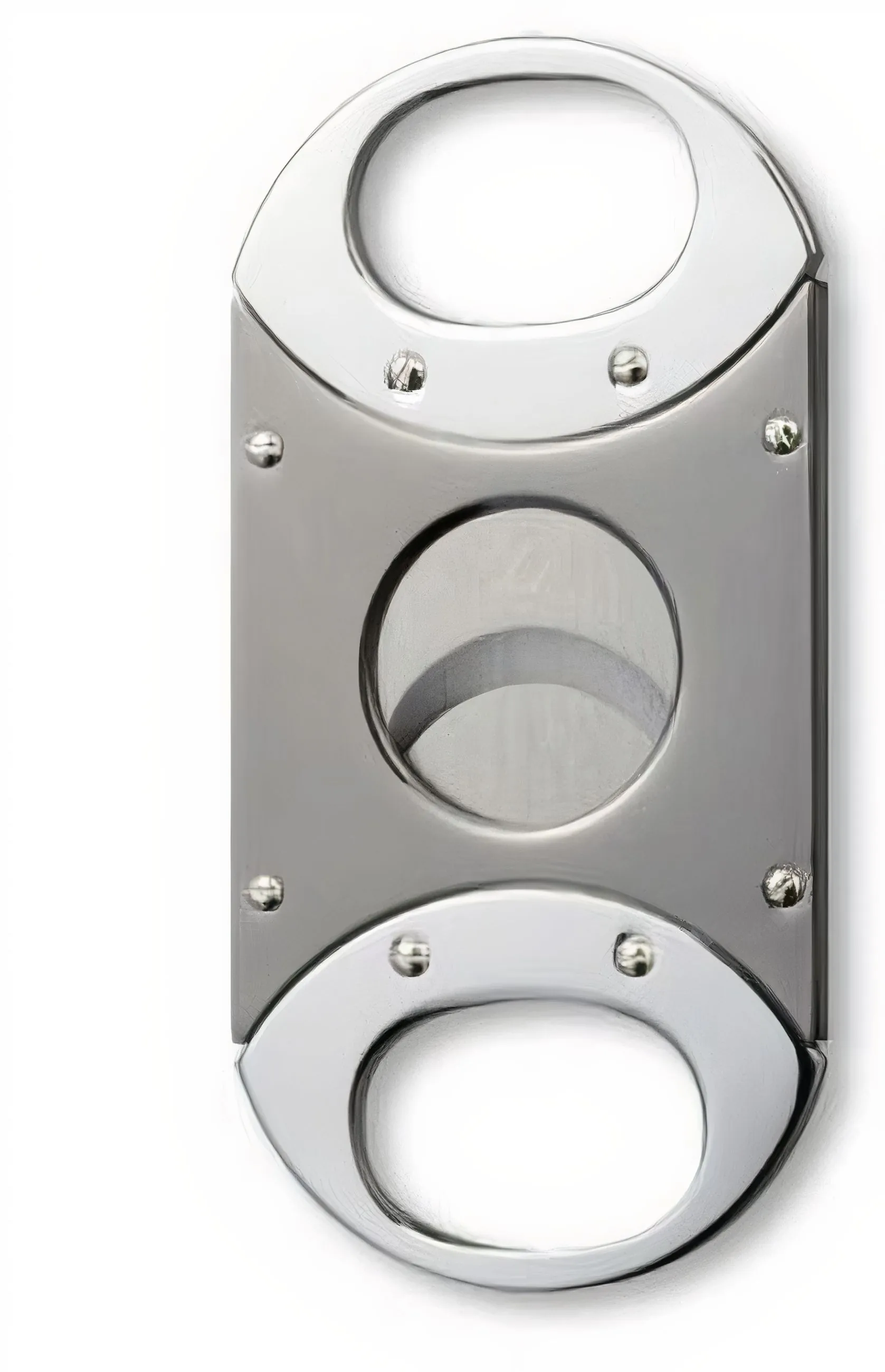 Las anchas empuñaduras ovaladas para los dedos brindan un movimiento suave y sin esfuerzo. Esto ayuda a las cuchillas gemelas de acero inoxidable súper afiladas a cortar casi cualquier puro de hasta un calibre de 54. Con un tacto sólido y equilibrado y una acción de corte de precisión, este cortapuros de guillotina le permitirá cortar con estilo en cualquier ocasión y lugar.