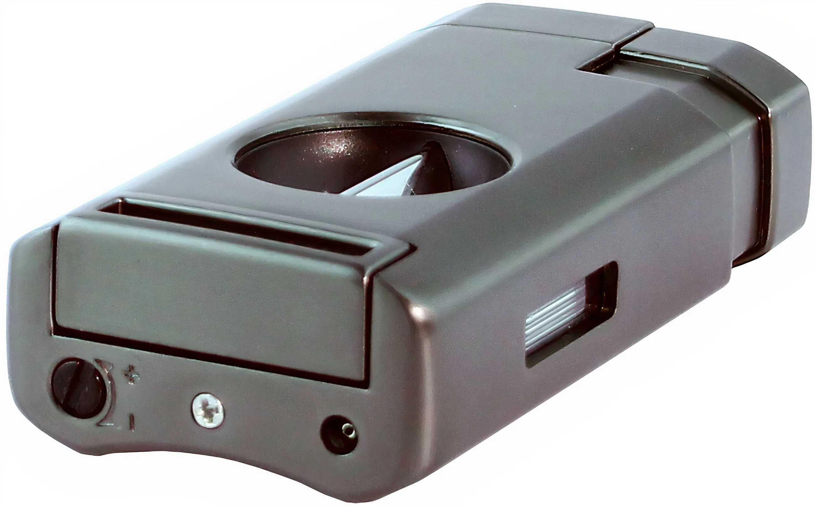 El encendedor cuenta con tres llamas jet que se estrechan hacia el centro, lo que asegura que sus puros se enciendan de manera precisa y uniforme. Las llamas están protegidas del polvo y la suciedad por una tapa protectora que se abre automáticamente, lo que garantiza el rendimiento duradero del encendedor.