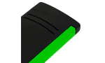 - Diseño y Materiales:- Cuerpo negro mate con botón verde brillante