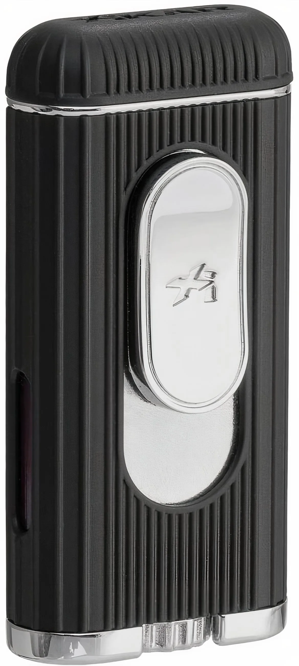 El Encendedor Xikar Jet Hedron en Negro y Plata es un encendedor de chorro moderno de la marca Xikar que impresiona con su cuerpo negro mate y elegantes elementos cromados. El potente encendedor a prueba de viento ofrece una llama de chorro confiable que es ideal para puros. El cuerpo negro mate tiene un patrón de líneas finas que le da una estructura adicional. El gatillo de la llama está marcado con el logotipo de Xikar y asegura una operación cómoda.