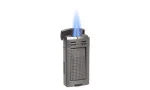 - Llama doble de chorro a prueba de viento, donde las llamas se estrechan entre sí para asegurar un encendido preciso y seguro de su puro sin ennegrecer accidentalmente la capa.