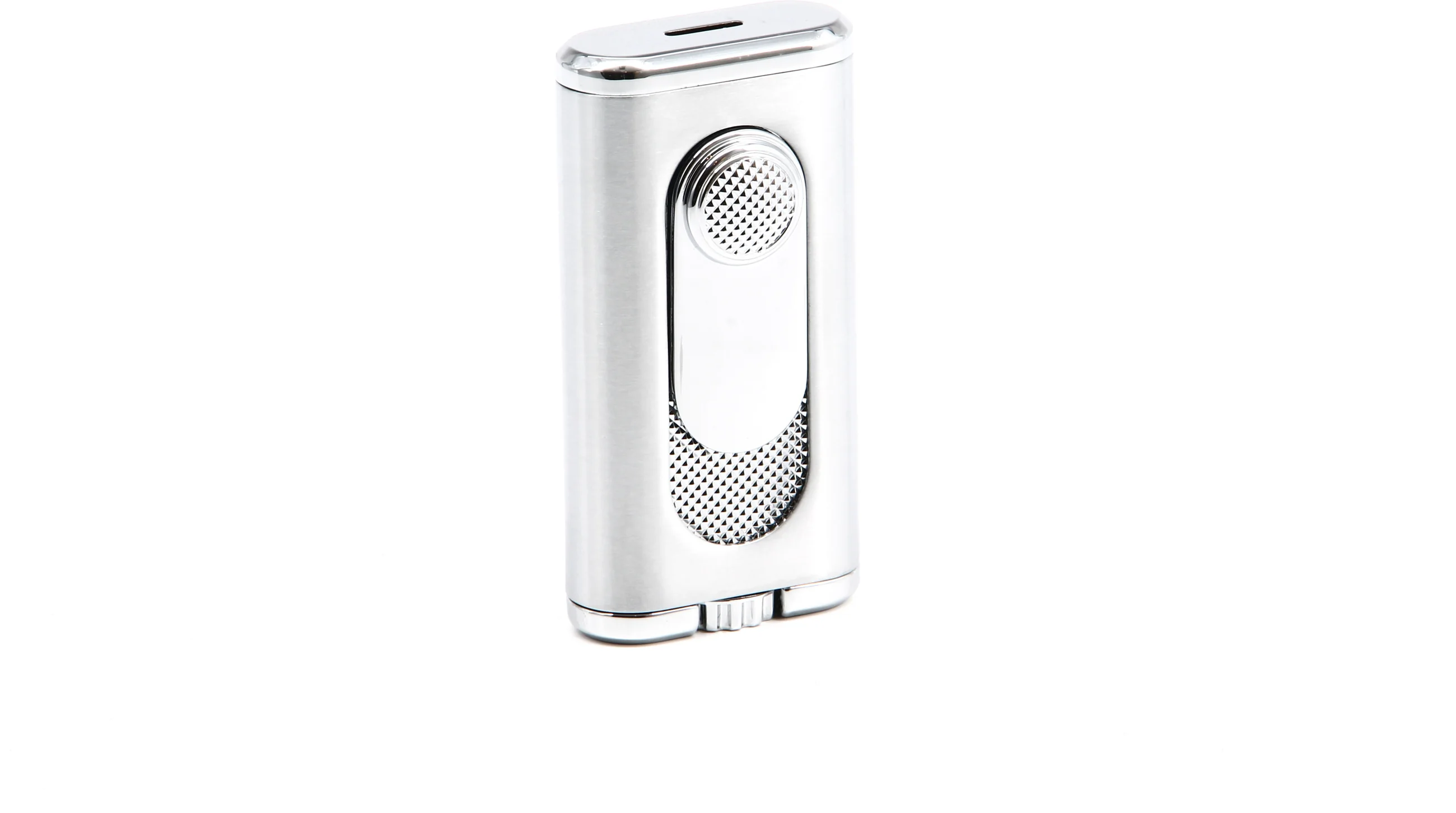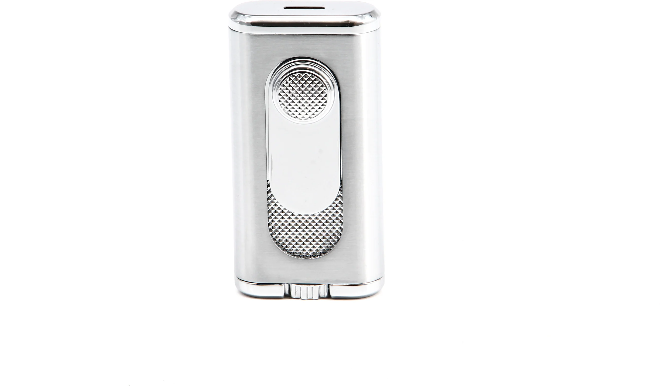 El atractivo encendedor tiene un acabado plateado y cromado con detalles en forma de diamante texturizado que también adornan el gatillo de encendido deslizante. Este aspecto moderno y sofisticado hace que el Verano sea una excelente opción para esas reuniones en las que todos los ojos están puestos en usted.