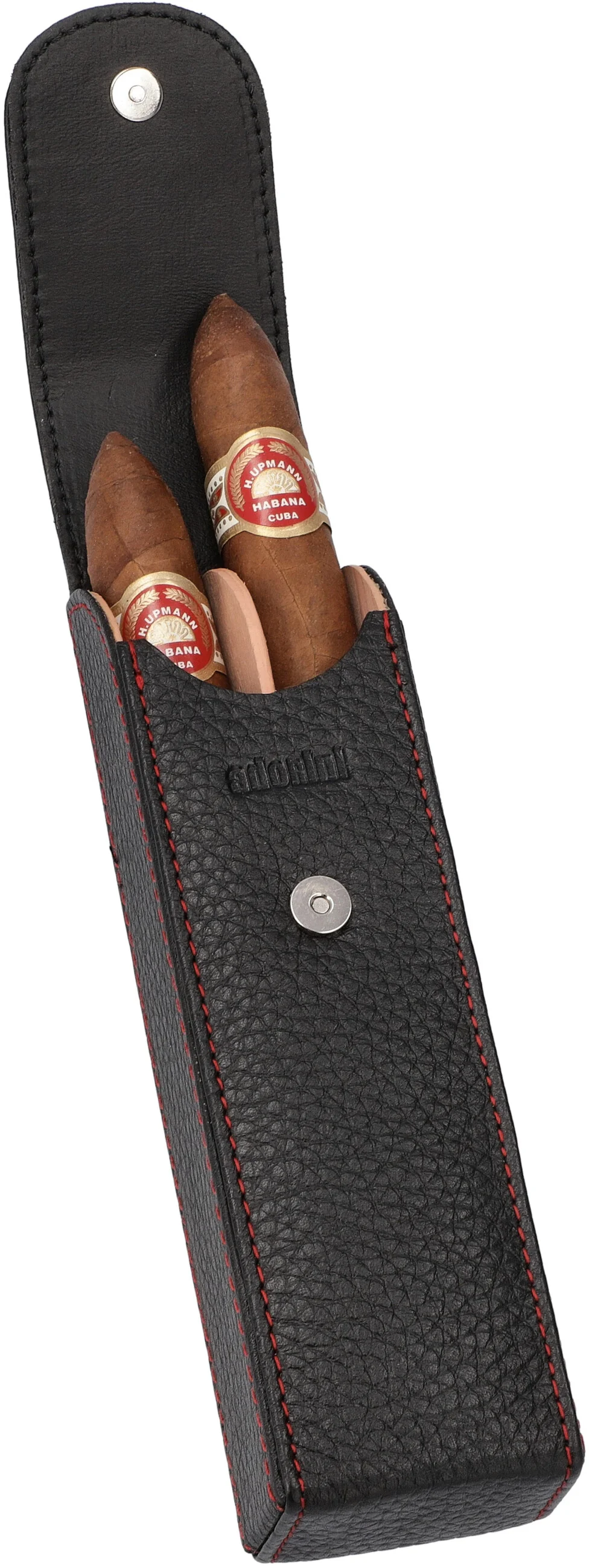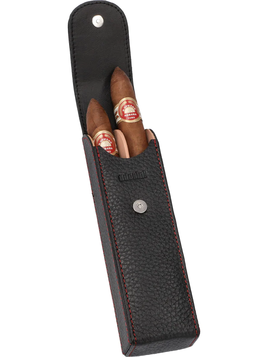 Funda adorini para puros de bolsillo negro con hilo rojo