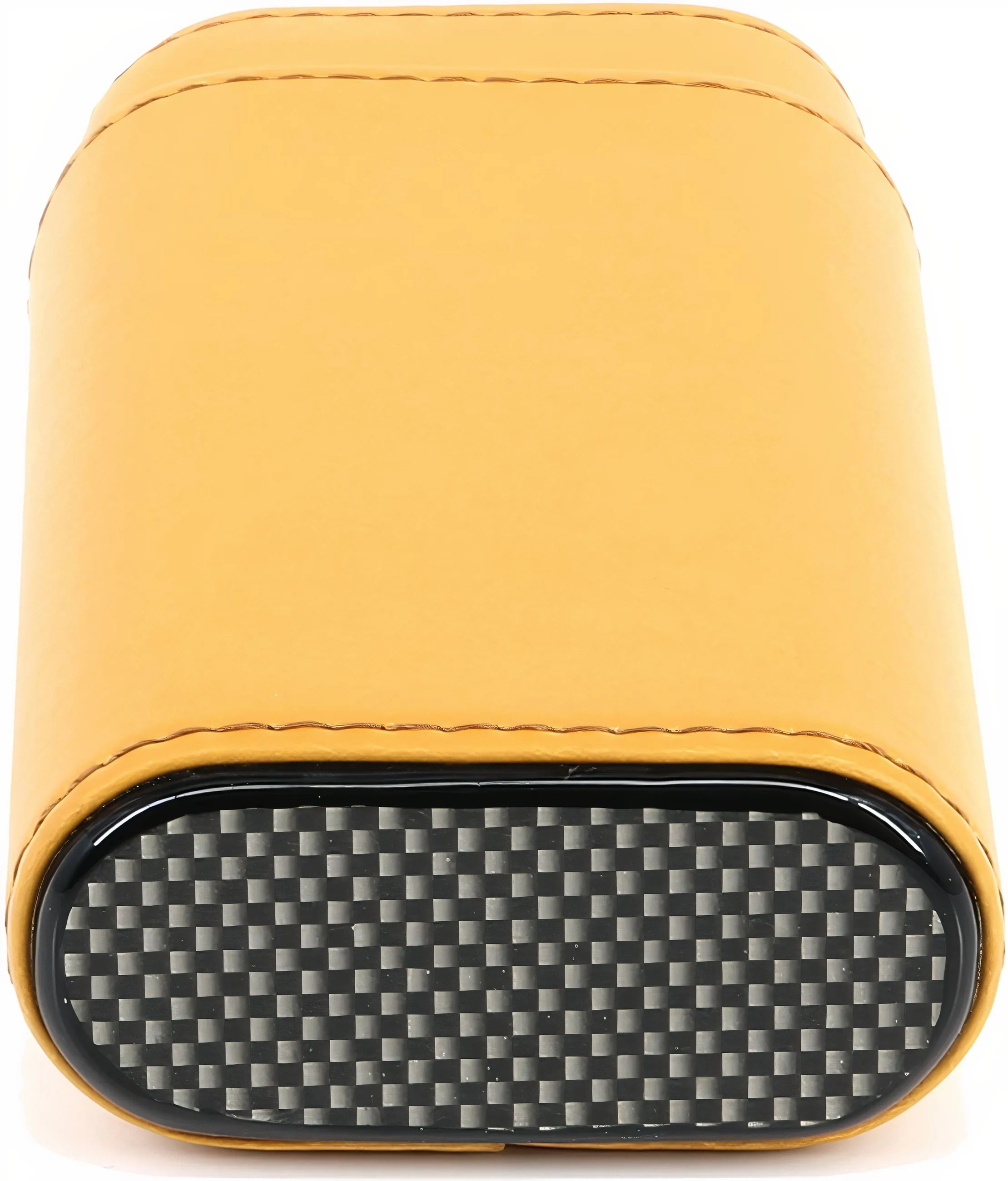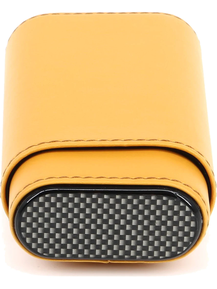 - Estuche de viaje de piel amarilla y aplicaciones con aspecto de carbono
