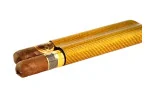 Estuche de fibra de carbono dorado para 2 puros con un calibre de 57
