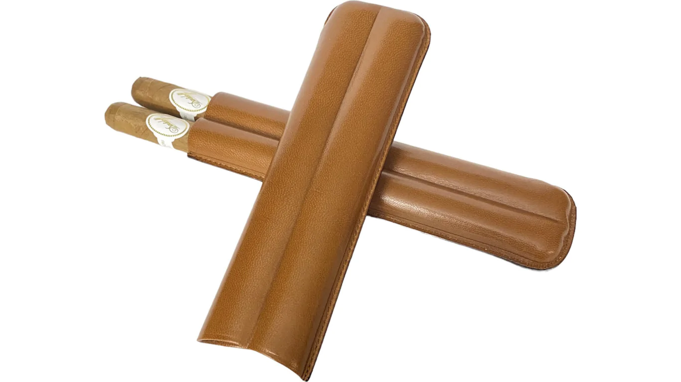 - Estuche clásico de piel para puros en color marrón