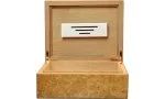 Este humidor cuenta con un impresionante revestimiento de raíz natural con un acabado brillante de alto brillo. El interior está forrado con cedro español, que proporciona un ambiente ideal para hasta 35 puros tamaño Corona. Las bisagras de cuadrante premium facilitan la apertura y el cierre, mientras que un divisor ayuda a mejorar la organización de sus puros.