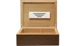 Este humidor proporciona humedad constante con un humidificador Guy Janot. El dispositivo utiliza piedra mineral, que se ajusta naturalmente a cualquier fluctuación de humedad. Este control de humedad altamente eficiente significa que sus puros siempre reciben la cantidad justa de humedad. También significa menos mantenimiento para usted. Simplemente agregue agua destilada una vez al mes, según sea necesario.