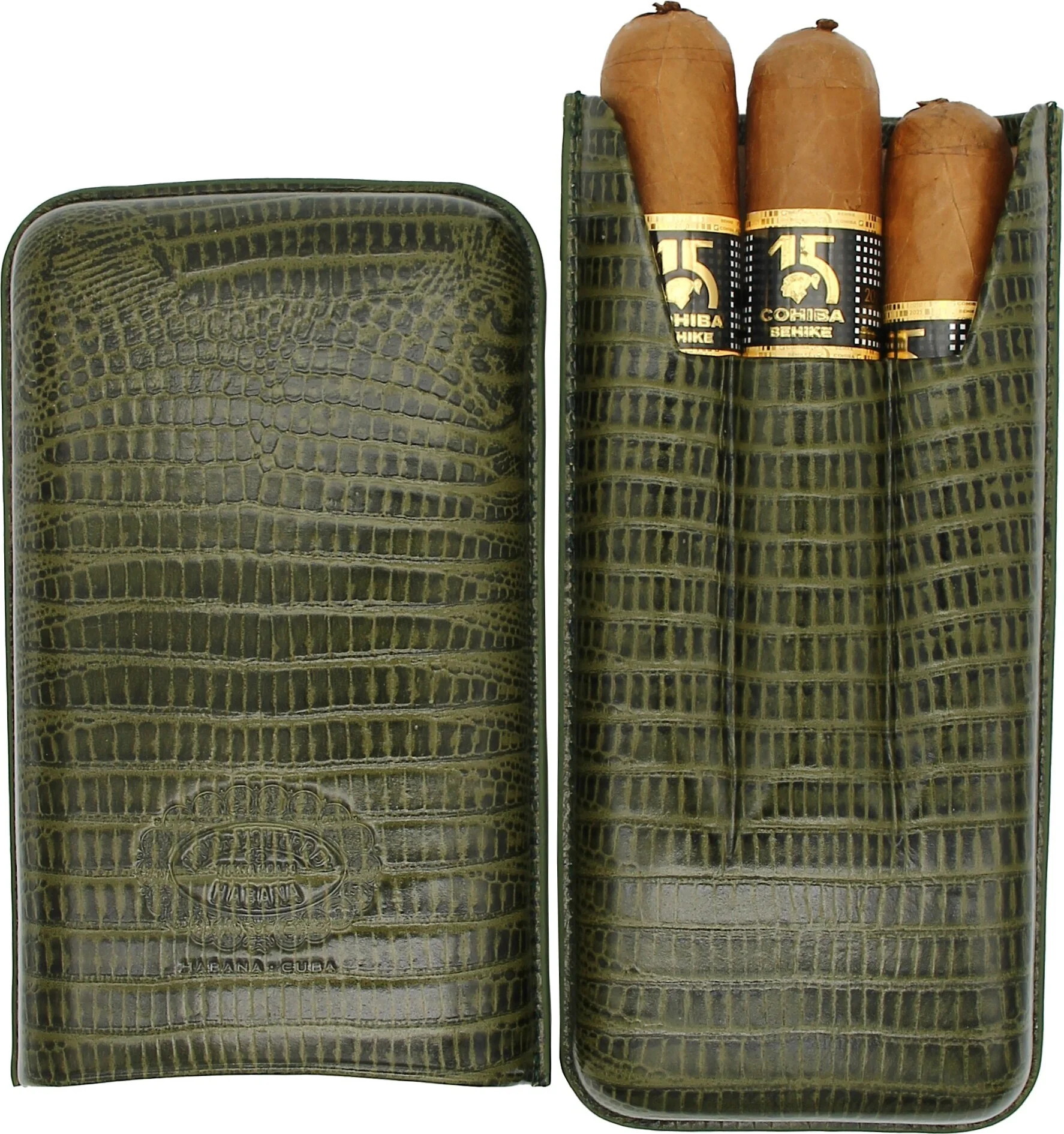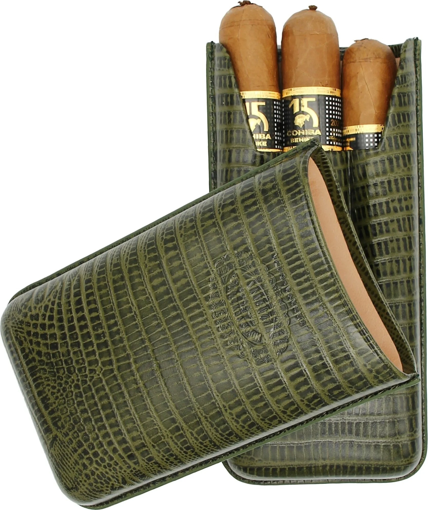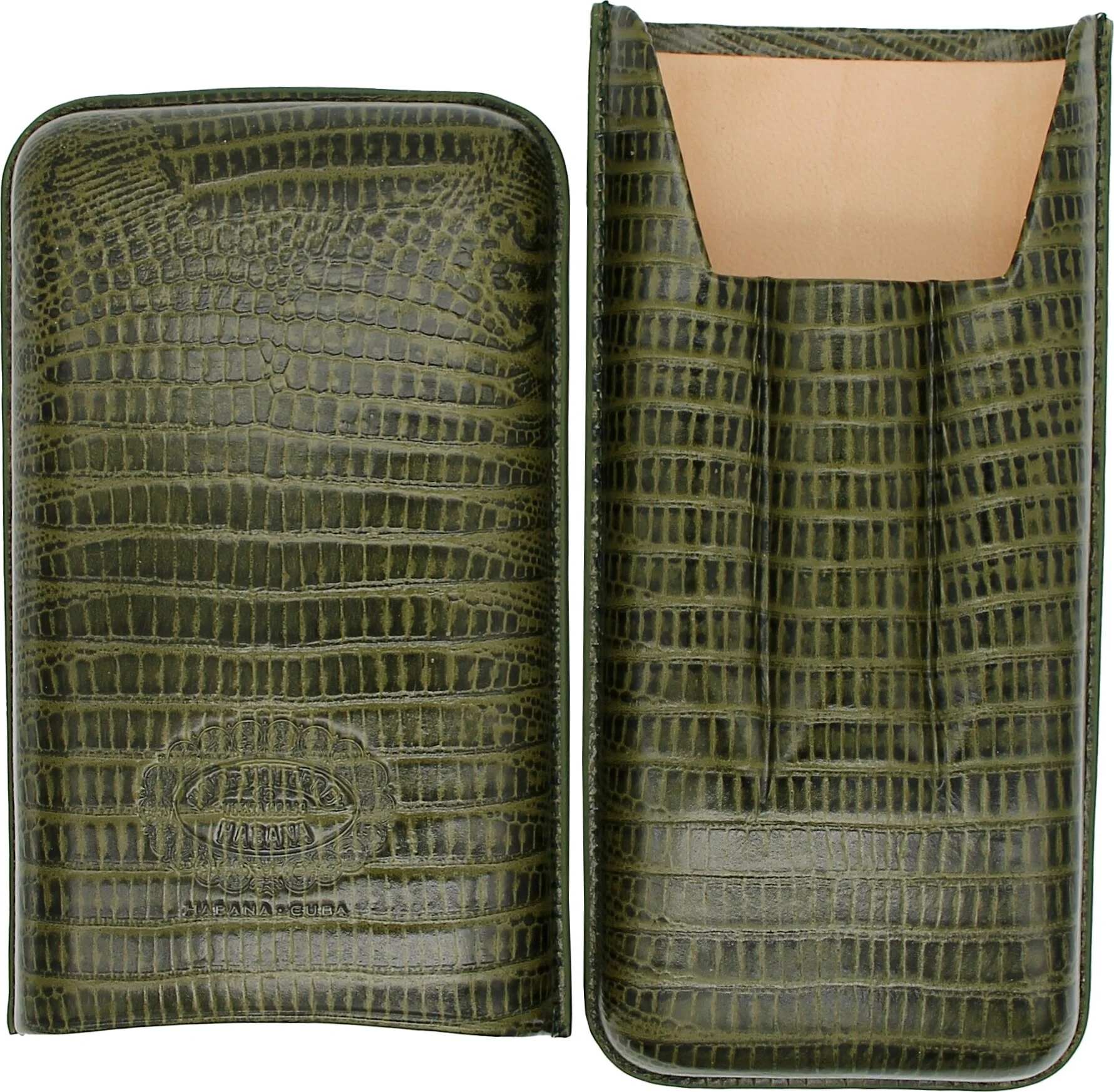 Hoyo de Monterrey Estuche para Puros Cuero Verde 3 pzs.
