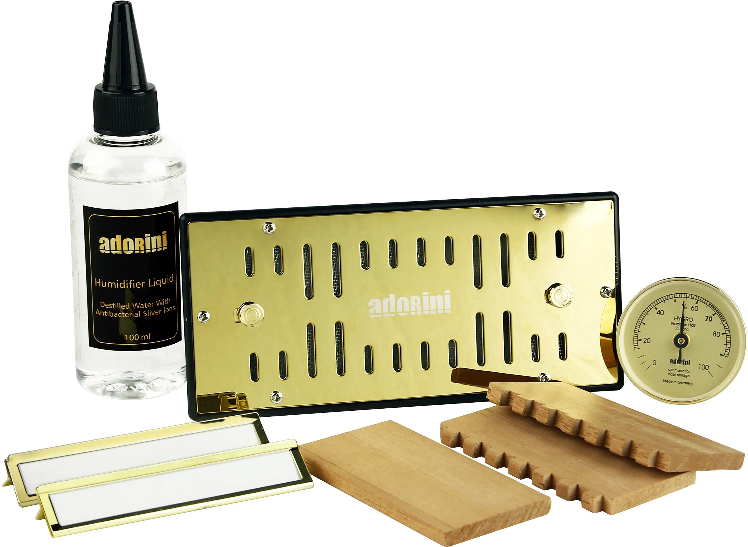Producto bien terminado, higrómetro preciso. Viene con agua destilada, higrómetro y separadores de madera para organizar el humidor.