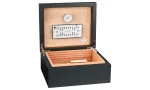 El Humidor adorini Torino Deluxe, un clásico de la marca adorini, ahora también está disponible en tamaño mediano. Con una capacidad de 75 puros, ofrece suficiente espacio para almacenar sus puros favoritos. Impresiona con su acabado negro mate y bisagras plateadas, que le dan un aspecto elegante. El humidor tiene un cuerpo extra fuerte y está revestido con madera de cedro en el interior para asegurar condiciones óptimas de almacenamiento.