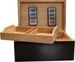 La tapa se abre con la mayor facilidad gracias a las bisagras de primera calidad, revelando un interior de madera de cedro. La construcción de cuerpo grueso ofrece mayor resistencia y durabilidad. Una bandeja extraíble y un divisor le permiten mantener sus puros organizados para que sepa dónde dirigir su mirada cuando esté listo para fumarse uno en particular. Cada puro recibirá un control constante de la humedad mediante dos humidificadores autorregulables. Simplemente agregue agua destilada según sea necesario y podrá continuar felizmente con su negocio.