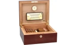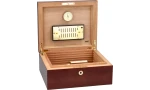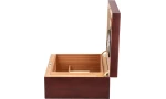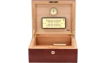 Este humidor tan bien hecho llama la atención por su atractivo acabado de palo de rosa multicapa y elegante cerradura chapada en oro que evitará que las manos no deseadas se sumerjan en sus preciados puros. La tapa se abre con facilidad gracias a las resistentes bisagras de cuadrante chapadas en oro de 24K pulidas a mano, que proporcionarán durabilidad para un uso a largo plazo. Una primera mirada al interior revelará el exclusivo sistema RibTech de costillas de ventilación de adorini, que mejora la circulación de aire para garantizar que cada uno de sus hasta 75 puros tamaño Corona se beneficien de un control climático óptimo. La humedad está regulada por el humidificador de polímeros acrílicos chapado en oro adorini deluxe, que se puede maximizar al rango deseado de humedad gracias a sus aberturas de ventilación ajustables.