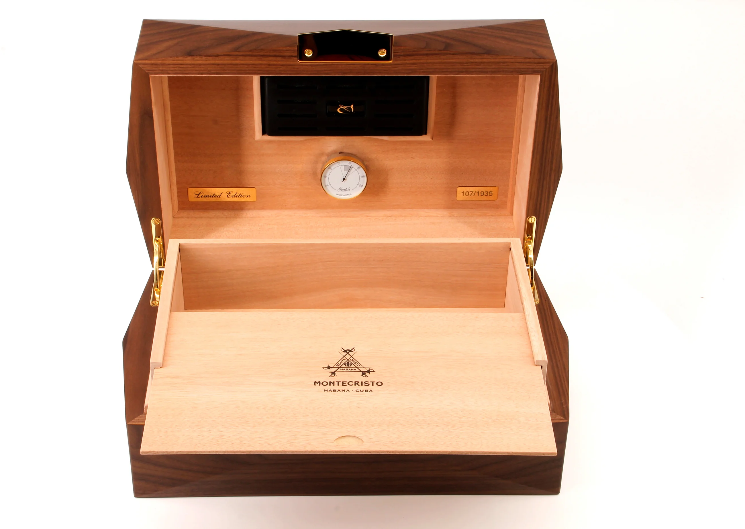 Tan rico y refinado en estilo como los puros que le dan nombre, el humidor Montecristo Linea 1935 es un hallazgo fantástico que seguramente traerá alegría infinita a cualquier amante de Montecristo. Obtenga el suyo antes de que se acaben para siempre.