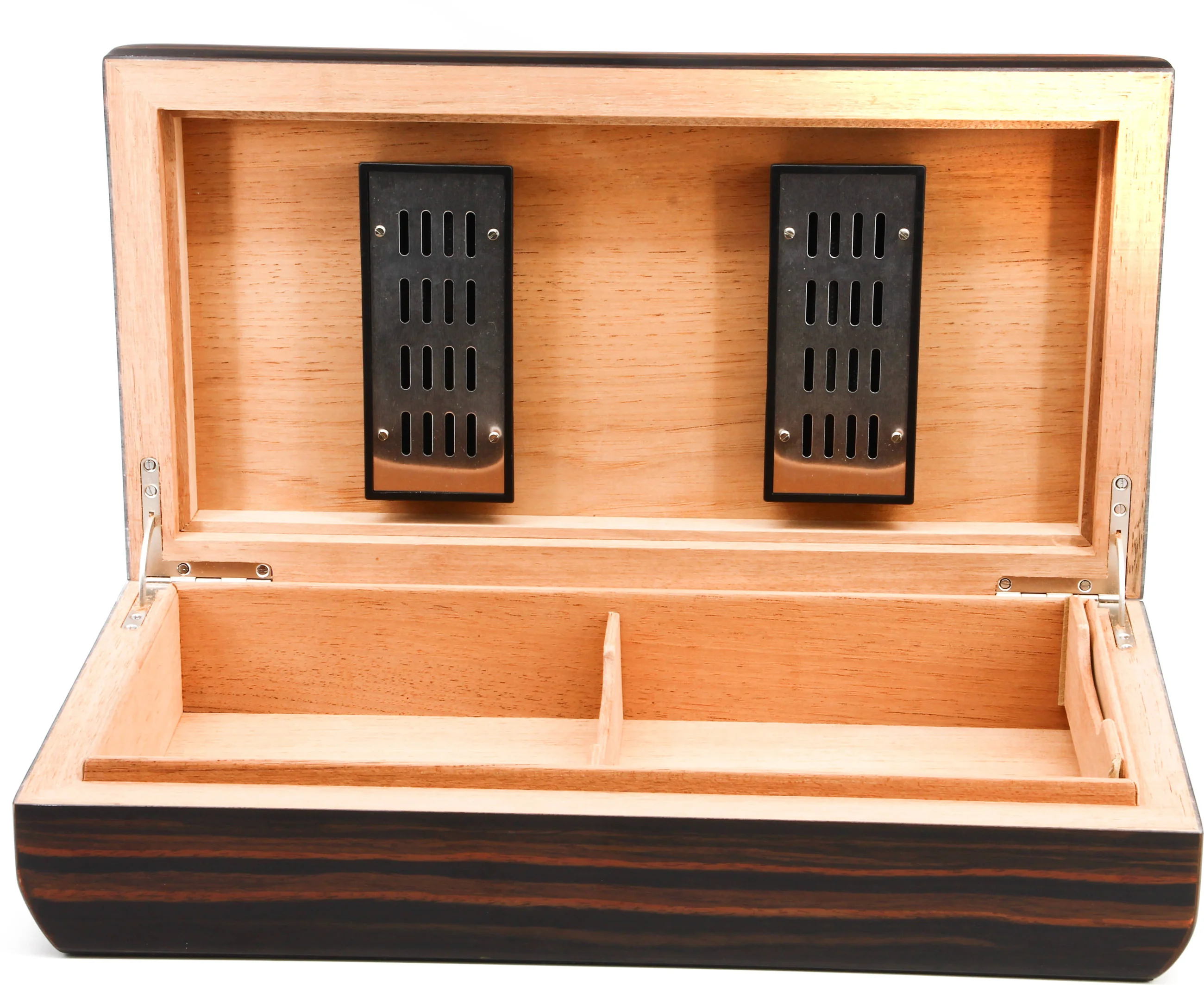 Rematado con una construcción de cuerpo grueso y bisagras sólidamente construidas, el humidor Konvex Makassar Matte 80 de Pegasus es un humidor bellamente diseñado en el que puede confiar para mantener sus puros en las mejores condiciones y con un estilo incuestionable durante los próximos años. Dese un capricho y disfrute de sus puros con un humidor Pegasus.