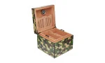 - Humidor en cubo moderno con un llamativo patrón de camuflaje y el logotipo de S.T. Dupont impreso sutilmente en la parte frontal de la tapa.