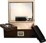 Este set comienza con un humidor bellamente elaborado con una llamativa chapa de ironwood. Los patrones de vetas claras y oscuras están perfectamente resaltados por un acabado satinado brillante. Una tapa de cristal mantiene su colección de puros a la vista, mientras que un higrómetro digital montado en la parte delantera del humidor le permite vigilar los niveles de humedad. El interior de cedro español y el humidificador de polímeros acrílicos incluido proporcionan un hogar seguro para hasta 50 puros de tamaño Corona.
