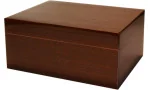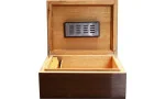 El acabado de laca brillante del humidor cubre una chapa de wengué agradablemente oscura, una madera superresistente autóctona de África Central. Este atractivo aspecto es perfecto para su domicilio u oficina, y proporciona un hogar seguro y elegante para hasta 50 de sus puros favoritos.