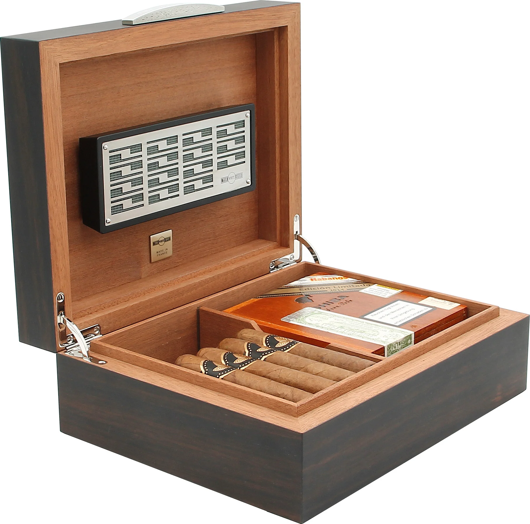 El humidor está fabricado para Dunhill en Francia, como confirma de forma impresionante una placa en su interior.